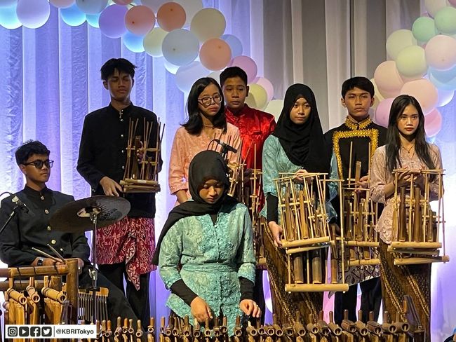Jakarta - Siswa Sekolah Republik Indonesia Tokyo (SRIT) unjuk penampilan kesenian angklung dalam acara Min On Kid's Festa 2023 di Tokyo, Kamis (27/7/2023). Yuk simak!