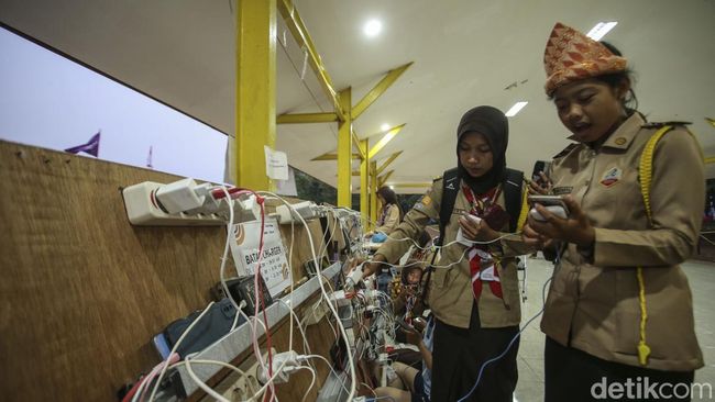 Penampakan Antrean Charger HP Para Anggota Pramuka di Rainas XII