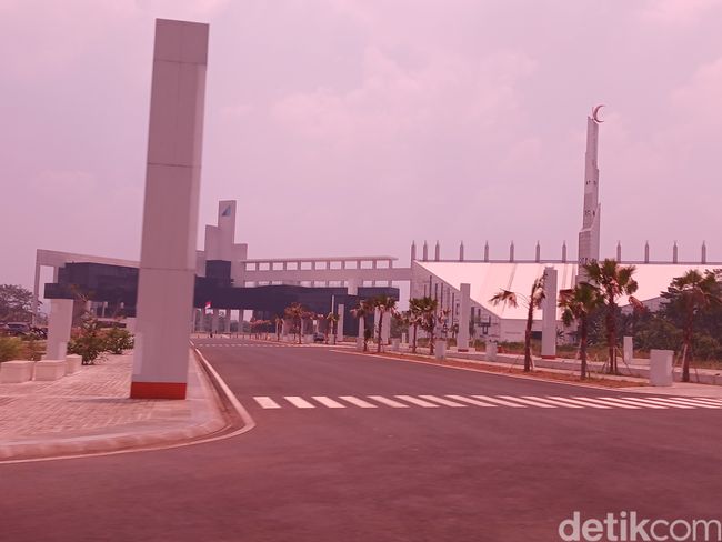 Penampakan UIII dari depan, dengan landmark-nya Gedung Rektorat (tengah) dan masjid (kanan). (Foto: Nograhany WK/detikcom)