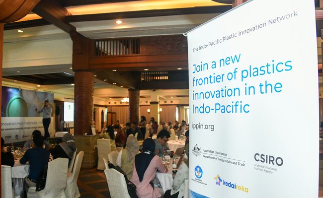 Jakarta - 8 Inovasi pengurangan sampah plastik di Indo-Pasifik unjuk gigi di Indo-Pacific Plastics Innovation Network-Demo Day di Shangri La, Jakarta, Rabu (18/10/2023).