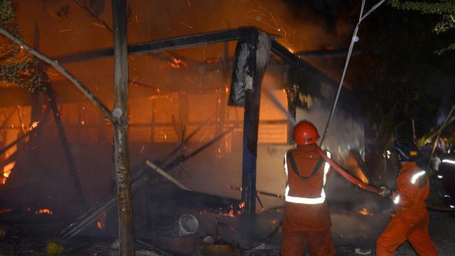 Makassar - Gedung sekolah SMP Negeri 8 Makassar, terbakar pada Senin (30/10/2023). Api menghanguskan ruang guru di sekolah tersebut.