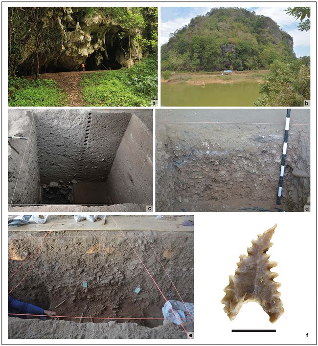 Gigi hiu purba ini ditemukan selama penggalian di pulau Sulawesi, Indonesia. Pulau terbesar ke-11 di dunia—memiliki catatan arkeologi yang kaya sejak zaman prasejarah, dan merupakan rumah bagi beberapa seni gua tertua di dunia. Foto: (Michelle C Langley dkk via Cambridge University Press)