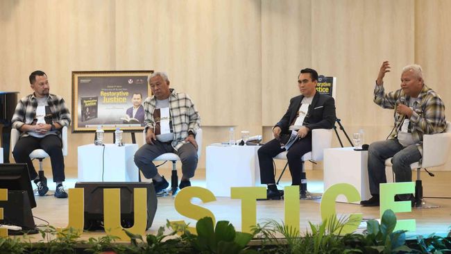 Banten - Penulis Jean Calvijn Simanjuntak membedah buku Restorative Justice, Metamorfosa Kearifan Lokal Indonesia bersama sejumlah guru besar. Begini momennya.