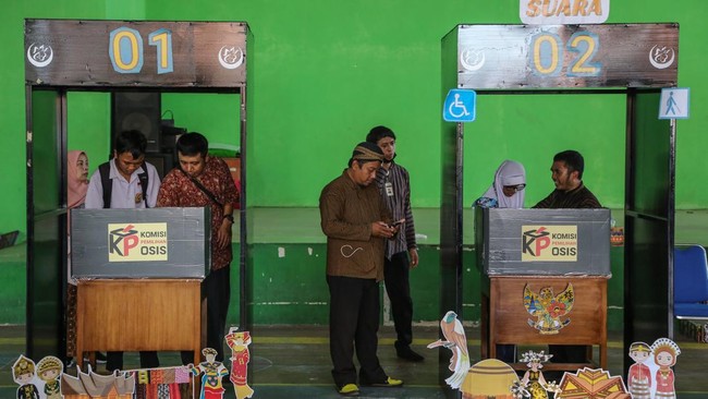 Semarang - Sejumlah siswa disabilitas di SLB Negri Semarang, Jawa Tengah, antusias mengikuti praktik demokrasi sebagai pengenalan pemilu.