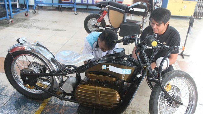Malang - Para siswa SMK 10 Malang, Jawa Timur, berhasil membuat kendaraan listrik berupa motor dan mobil. Begini bentuknya.