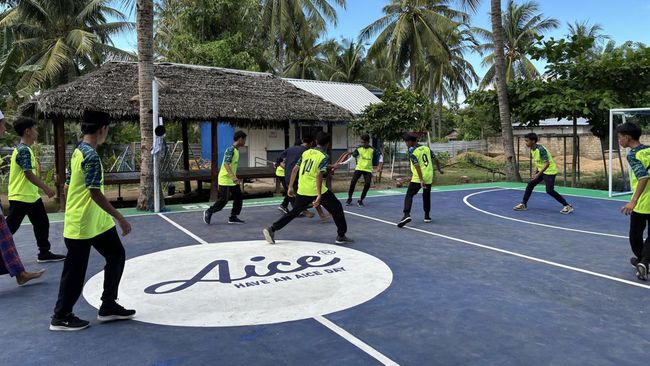 Jakarta - Aice membangun lapangan serbaguna di Lombok Utara. Pembangunan lapangan ini sebagai fasilitas pendukung pendidikan bagi para siswa-siswi pondok pesantren.