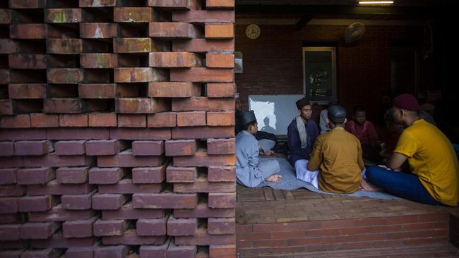 Dari sebuah bangunan pondok kecil terlihat beberapa pemuda membawa kitab suci Al Quran, mereka bersiap bertadarus yang biasa dilakukan saat bulan suci Ramadhan.