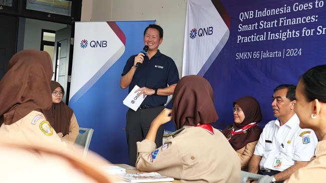 Jakarta - PT Bank QNB Indonesia Tbk mengadakan QNB Indonesia Goes to School di SMKN 66 Jakarta. Anak-anak diberikan literasi keuangan dan kewirausahaan.