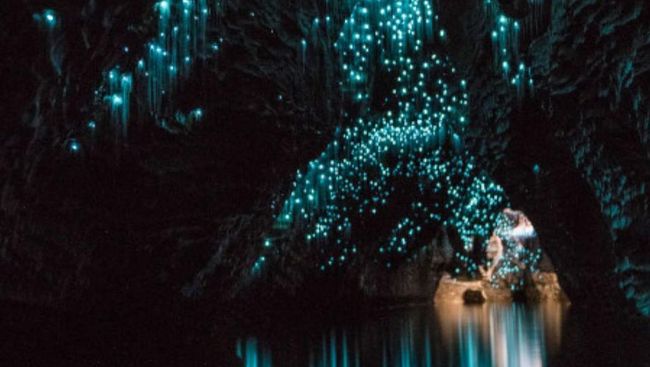 Pada tahun 1887, Kepala Suku Maori Tane Tonorau dan penjelajah Inggris Fred Mace menemukan sebuah tempat menakjubkan di New Zealand. Tempat ini adalah gua yang diterangi oleh cahaya biru kehijauan di dalamnya. Langi-langit gua dipenuhi batu kapur yang dihuni ribuan makhluk bercahaya. Makhluk ini adalah larva agas jamur karnivora yang disebut Arachnocampa luminosa atau cacing pendar. Foto: Instagram Resmi Gua Waitomo Glowworm/@ waitomoglowwormcaves