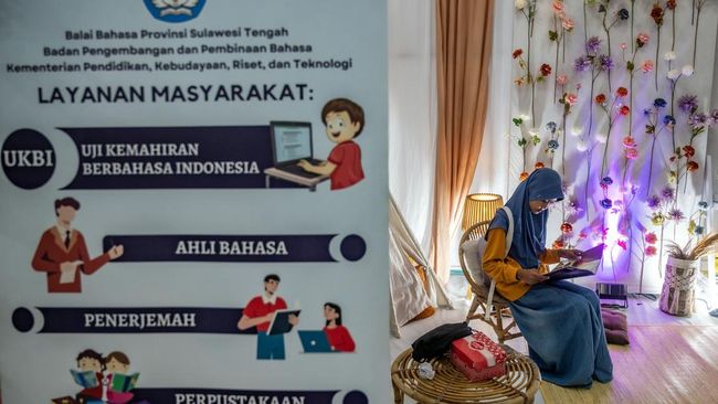 Seorang pelajar membaca buku di Pojok Baca pada Pameran Bulan Merdeka Belajar di Museum Negeri Sulawesi Tengah di Palu, Sulawesi Tengah, Jumat (31/5/2024).