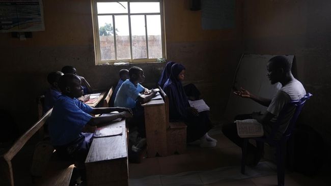 Nigeria - Sebuah sekolah di Nigeria tidak dibekali akses jaringan listrik yang memadai. Namun, hal itu tidak menghalangi para siswa untuk semangat belajar di sekolah.