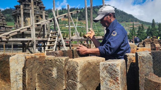 Jakarta - Candi Srikandi di kompleks Candi Arjuna, Batur, Kabupaten Banjarnegara, Jateng, tengah direhabilitasi, Begini prosesnya.
