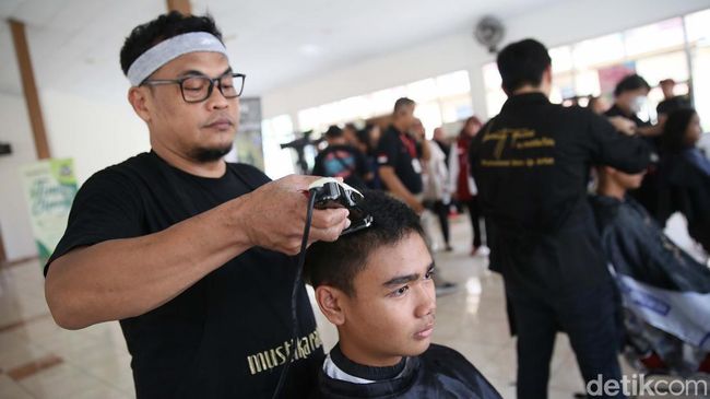Jakarta - Paskibraka Tingkat Pusat tengah menjalani proses Diklat di Taman Rekreasi Wiladatika (TRW) Cibubur. Hari ini mereka potong rambut bersama.