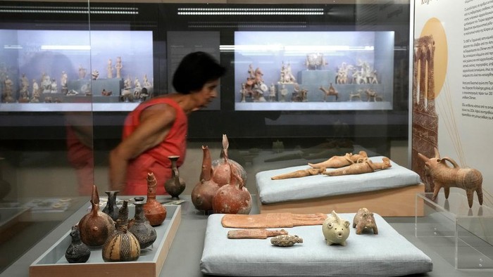 Siprus pada hari Senin (22/7) memamerkan artefak β beberapa di antaranya berusia ribuan tahun β yang dikembalikan setelah pedagang seni Turki menjarah artefak tersebut dari negara kepulauan yang terpecah secara etnis beberapa dekade lalu.