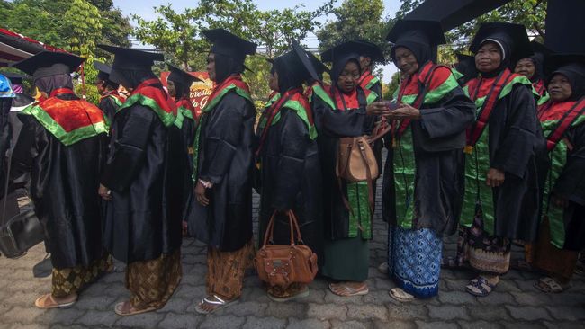 Boyolali - Sebanyak 460 lansia setelah mengikuti program sekolah lansia di Boyolali, Jawa Tengah. Ini momen saat mereka diwisuda.
