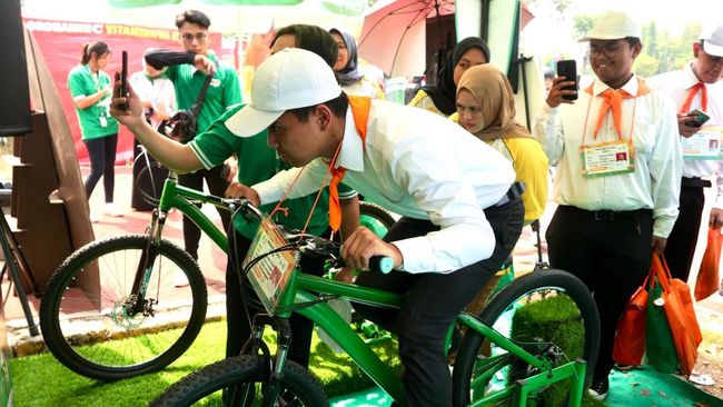 Semangatnya Mahasiswa Baru Ikut Lomba Isi Baterai dengan Kayuh Sepeda
