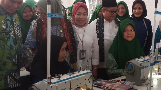 Jakarta - Menteri Pendidikan Dasar dan Menengah, Abdul Mu'ti sambangi SMK 3 Muhammadiyah Palembang dalam kunjungan kerja pertamanya, pada Jum'at (1/11/2024).