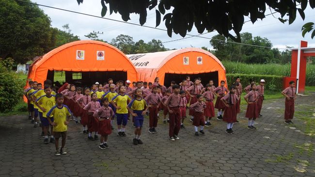 Jember - Sebanyak 75 siswa SDN Plalangan 3 Kecamatan Kalisat, Jember, terpaksa belajar di tenda darurat. Hal ini karena ruang kelas mereka ambruk.