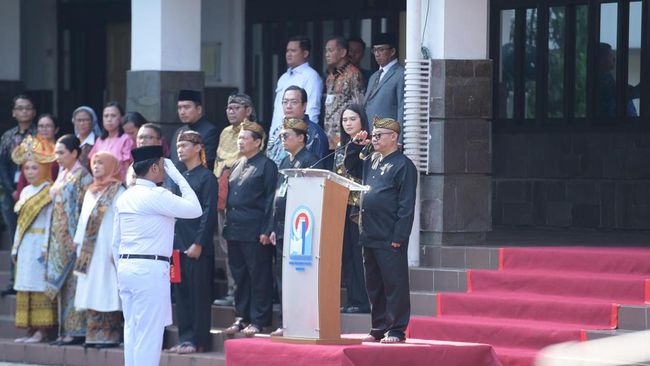Menteri Pendidikan Dasar dan Menengah (Mendikdasmen) Abdul Mu'ti hari ini, Jumat (2/5/2025) memimpin upacara Hari Pendidikan Nasional (Hardiknas) 2025 di Lapangan SD Regina Pacis Bogor. Abdul Mu'ti mengenakan pakaian adat Pangsi dari Jawa Barat. Foto: Kemendikasmen