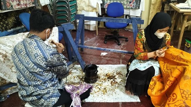 Jakarta - Begini potret anak-anak sekolah sekaligus pembatik di Rumah Batik TBIG Pekalongan, Jawa Tengah. Disabilitas tak menghalangi berkarya.