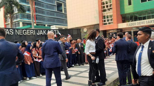 Jakarta - Presiden Prancis Emmanuel Macron berkunjung ke Universitas Negeri Jakarta (UNJ). Presiden Macron pun sempat wefie dengan para mahasiswa UNJ.