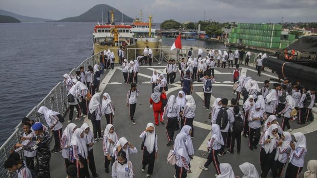 Naik KRI Teluk Wondama, Siswa SMP Ternate Dapat Ilmu Dunia Bahari