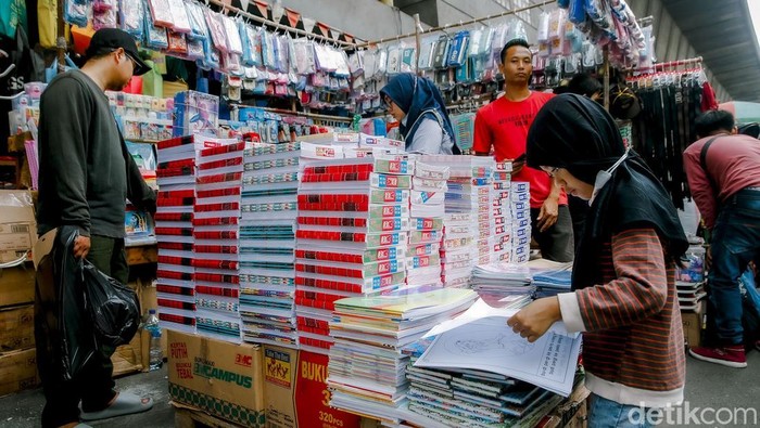 Jakarta - Meski libur sekolah belum usai, Pasar Asemka mulai dipadati orang tua yang berburu perlengkapan sekolah murah.