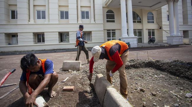 Indramayu - Pekerja terus kebut renovasi Wisma Haji Indramayu yang akan difungsikan sebagai sekolah rakyat. Proyek ditargetkan rampung pada Juli 2025.