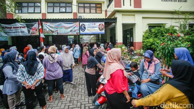 Bekasi - Hari pertama sekolah di Jawa Barat dimulai pukul 06.30 WIB. Banyak pelajar menahan kantuk saat berangkat di pagi buta.