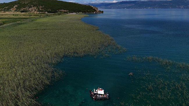 Para arkeolog yang bekerja di tepi Danau Ohrid di Albania mengatakan mereka telah menemukan permukiman manusia tertua yang dibangun di sebuah danau di Eropa. Penemuan ini mengungkap bukti komunitas berburu dan bertani terorganisir yang hidup hingga 8.000 tahun yang lalu. Foto: REUTERS/Fatos Bytyci