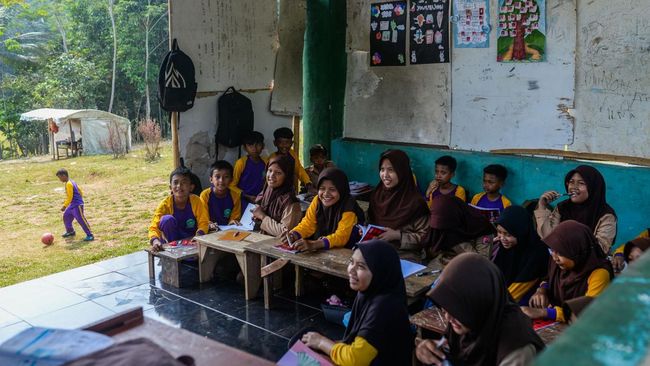 Anak-anak Lebak Belajar di Sekolah yang Hampir Roboh