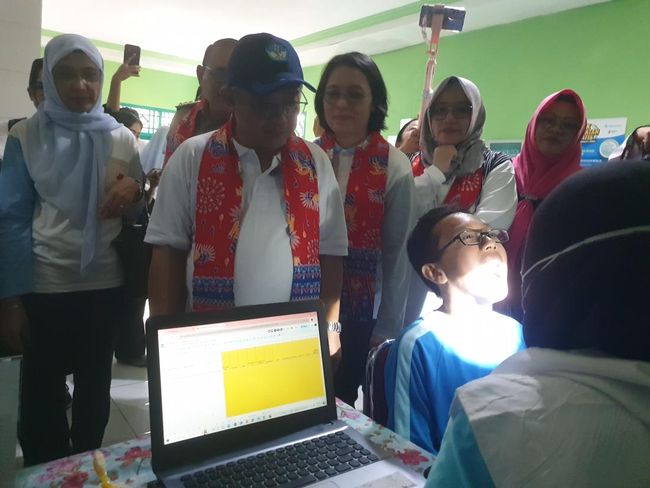 Jakarta - Mendikdasmen Abdul Mu'ti pantau langsung proses Cek Kesehatan Gratis (CKG) untuk siswa di SDN Cideng 02 Pagi, Senin (4/8/2025).