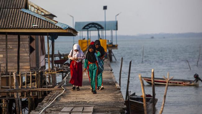 Riau - Murid SD di Pulau Mubud harus menyeberang dengan perahu motor setiap hari demi sekolah. Tarif Rp10.000 pulang-pergi menjadi ongkos rutin mereka.