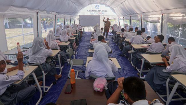 Bogor - Sejak atap lantai dua bangunan sekolah ambruk pada Rabu (10/9/2025), para siswa terpaksa mengikuti pelajaran di tenda darurat maupun di halaman sekolah.