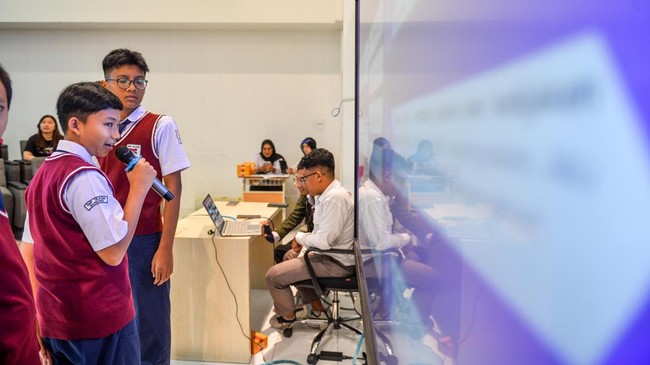 Pelajar Sekolah Menengah Pertama (SMP) mengikuti pelatihan keamanan siber di Kampus Telkom University, Bandung, Jawa Barat, Senin (6/10/2025). ANTARA FOTO/Raisan Al Farisi