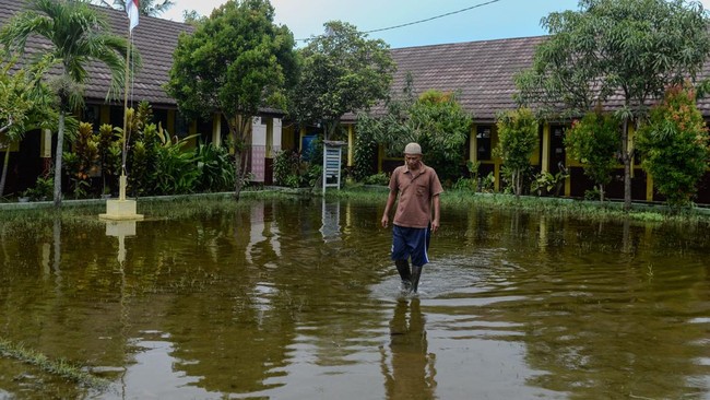 Serang - Banjir merendam dua sekolah dasar di Kota Serang sejak awal pekan. Aktivitas belajar mengajar terpaksa dilakukan secara daring akibat buruknya sistem drainase.