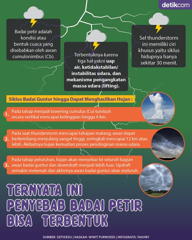 Jakarta - Tahukah detikers bagaimana badai petir bisa terbentuk? Lebih jelasnya simak infografisnya di sini!