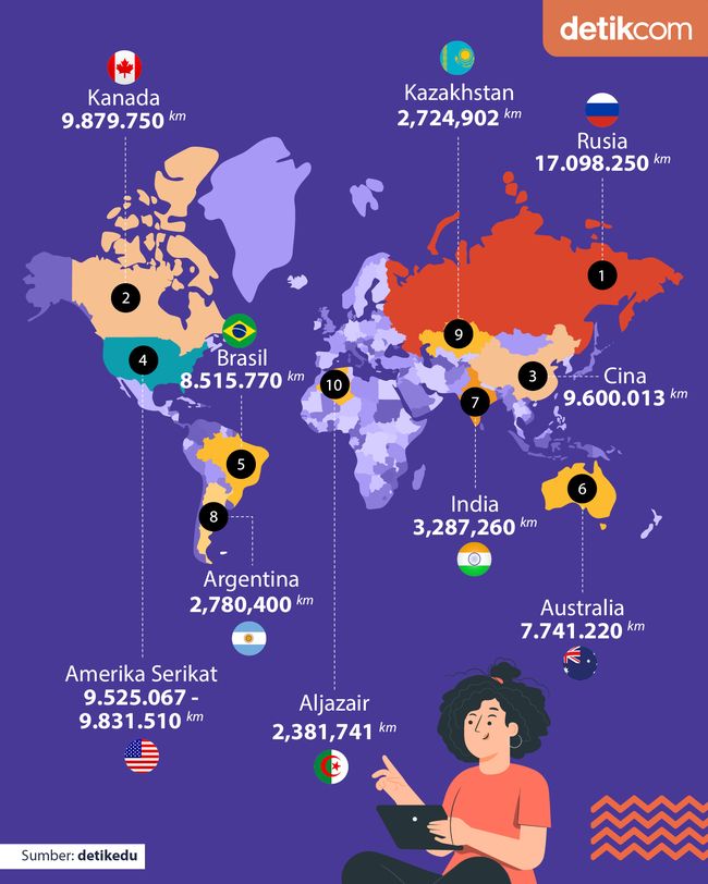 Jakarta - Tahukah kamu 10 negara terbesar di dunia berdasarkan luas wilayahnya? Simak infografisnya di bawah ini yuk!