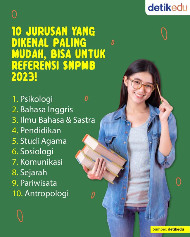 Jakarta - detikers sudah memilih jurusan kuliah untuk Seleksi Nasional Penerimaan Mahasiswa Baru (SNPMB) 2023? Jurusan ini dikenal paling mudah, bisa jadi referensi lho!