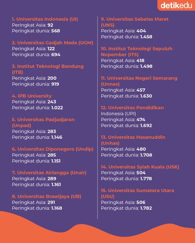 Infografis: 15 Kampus Terbaik di Indonesia Versi EduRank 2023