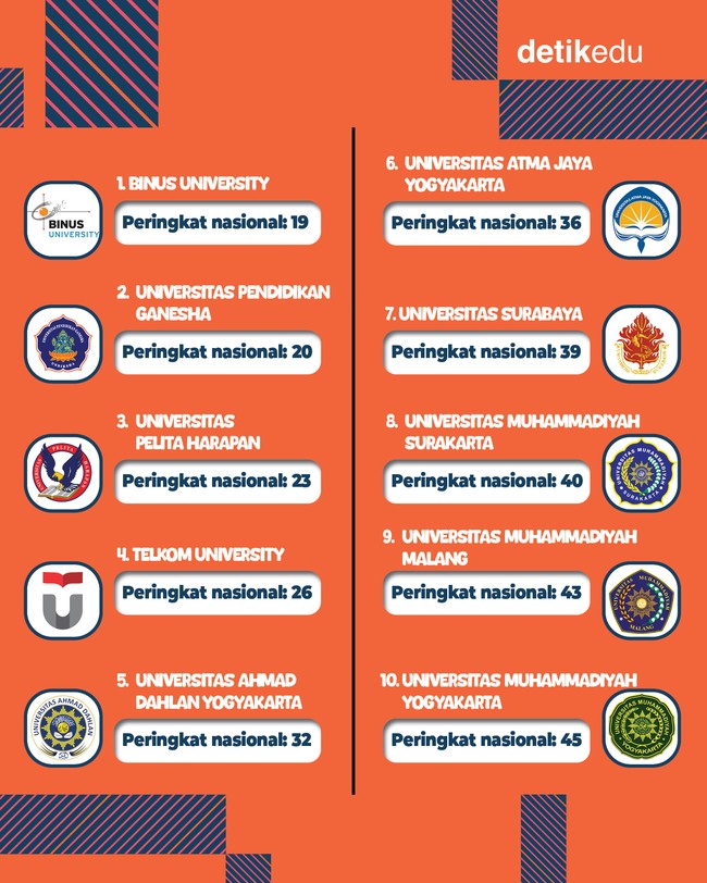 Jakarta - Ini dia 10 kampus swasta terbaik di Indonesia versi SCImago Institutions Rankings (SIR) 2024. Ada rencana kuliah di salah satu kampus ini detikers?