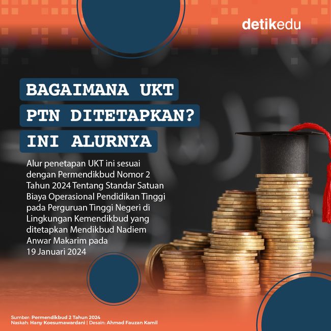 Jakarta - Uang Kuliah Tunggal (UKT) Perguruan Tinggi Negeri (PTN) ditetapkan dengan beberapa dasar. Bagaimana alurnya? Simak infografisnya di sini!