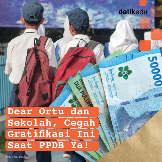Jakarta - KPK mengeluarkan surat edaran untuk mencegah gratifikasi saat Penerimaan Peserta Didik Baru (PPDB) 2024 di sekolah. Apa saja gratifikasi yang dilarang KPK?