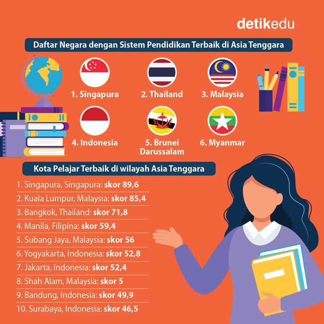 Jakarta - Ini daftar negara dengan sistem pendidikan terbaik di ASEAN berdasarkan survei CEOWORLD Magazine 2024 yang disusun dengan bandingkan 93 negara dalam dua kategori utama yakni kualitas dan peluang.