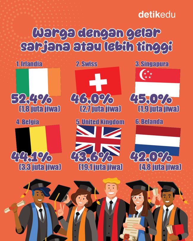 Infografis: 6 Negara dengan Warga Paling Berpendidikan di Dunia, Mana Jawaranya?