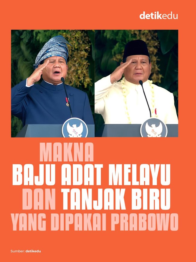 Jakarta - Presiden Prabowo Subianto mengenakan pakaian beskap Melayu asal Riau dan tanjak warna biru pada Upacara Penurunan Sang Saka Merah Putih di Istana Merdeka, Jakarta Pusat pada Minggu (17/8/2025) pukul 17.00 WIB. Baju tersebut berbeda dengan yang ia gunakan saat upacara pengibaran yakni baju adat Melayu yang lebih simpel. Seperti apa makna kedua pakaian yang dikenakan Prabowo dalam upacara pengibaran dan penurunan Merah Putih tersebut?