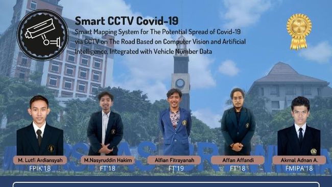 Dengan bantuan bimbingan Raden Arief Setyawan, ST, MT, mahasiswa yang terdiri dari Alfian Fitrayansyah, Affan Affandi, Akmal Adnan Attamami, Muchammad Nasyruddin Hakim, dan Muhammad Lutfi Ardiansyah, bisa membuat inovasi berjudul "Smart Mapping System for The Potential Spread of COVID-19 via CCTV on The Road Based on Computer Vision and Artificial Intelligence, Integrated with Vehicle Number Data."