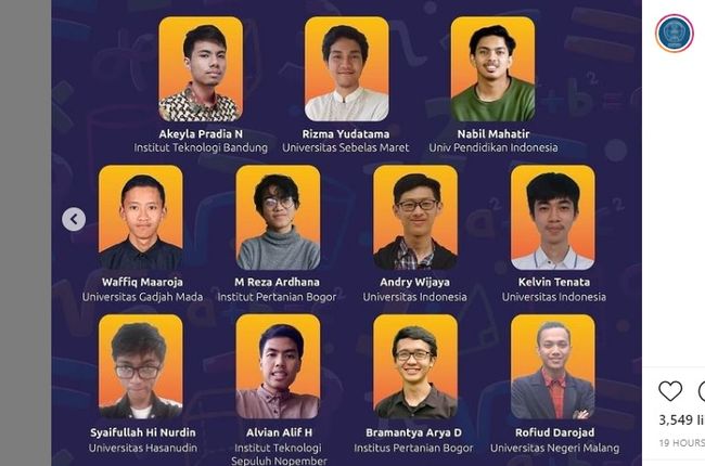 Mahasiswa yang memenangkan medali di kancah internasional ini terdiri dari berbagai perguruan tinggi di Indonesia, baik institut maupun universitas. Berikut daftarnya: