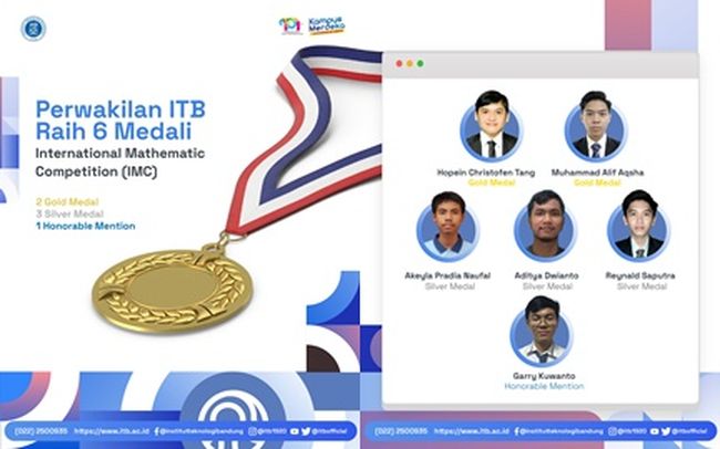 Tim Matematika Institut Teknologi Bandung (ITB) meraih 5 medali dan 1 Honourable Mention dalam International Mathematics Competition (IMC) 2021. Perolehan itu membawa ITB duduk di peringkat 34 dari 113 peserta olimpiade.