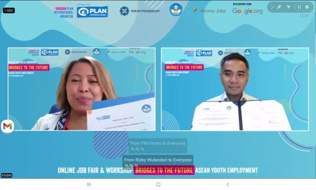 "Sejak November 2020, Plan Indonesia bekerja sama dengan ASEAN Foundation dengan dukungan Google.org yang targetnya 5.200 kaum muda usia 18-29 yang dilatih untuk keterampilan teknis dan soft skill. Dan 55% penerima manfaat program ini adalah perempuan," papar Dini.